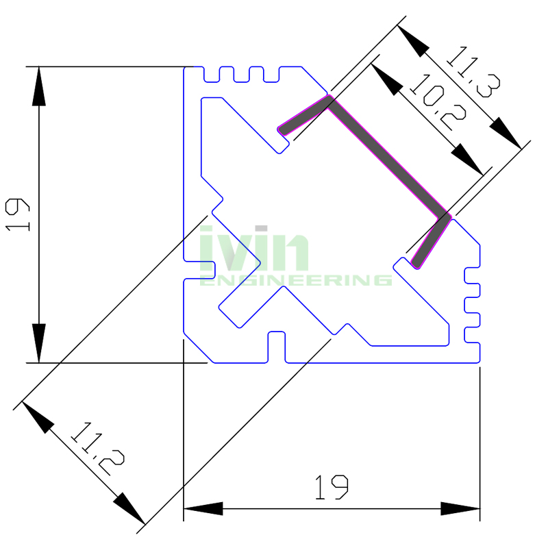 AB-1919 90° Corner LED linear light profile.