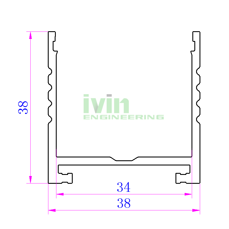 DG-3838 Aluminum profile. Use 34mm width PCB / strips. 570g / M. |